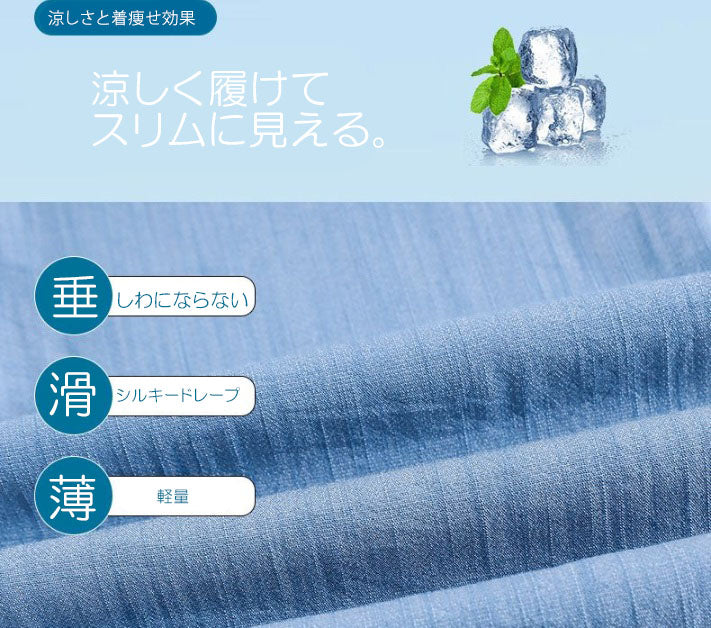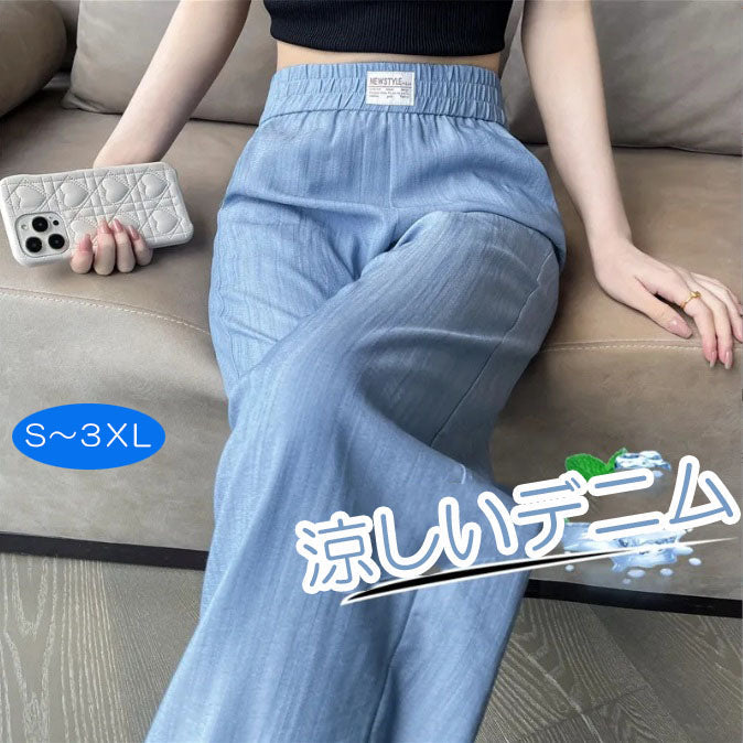 涼しい デニムパンツ レディース|接触冷感 パンツ|ワイドパンツ 夏用|ゆったりデニム ストレート|大きいサイズ デニム M~3XL|薄手デニムパンツ 夏|ひんやりボトムス レディース|冷感素材 ボトムス
