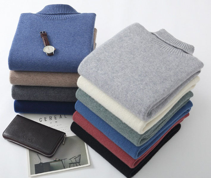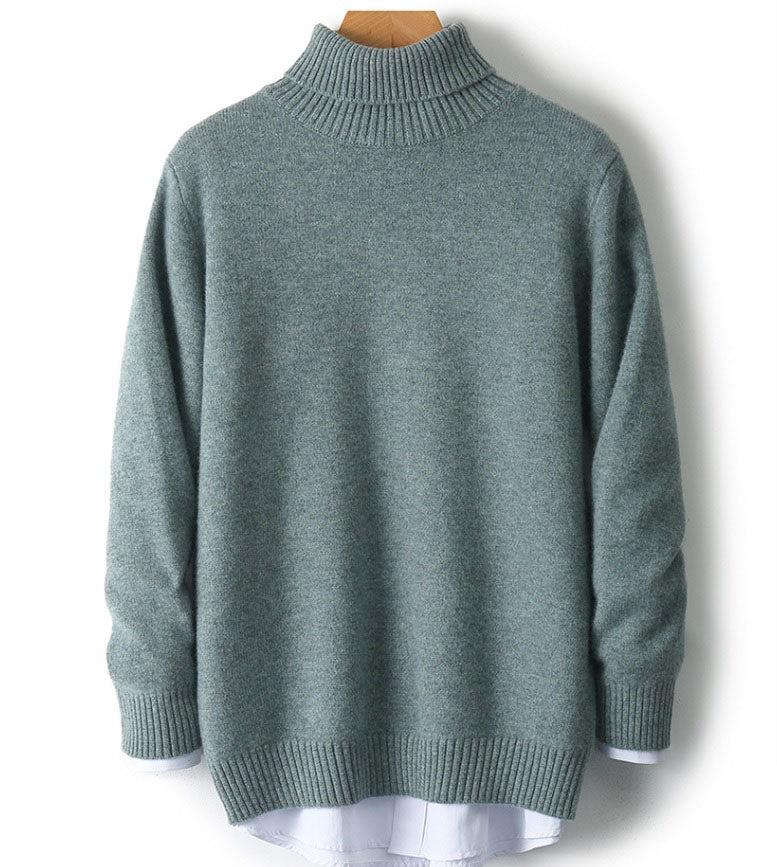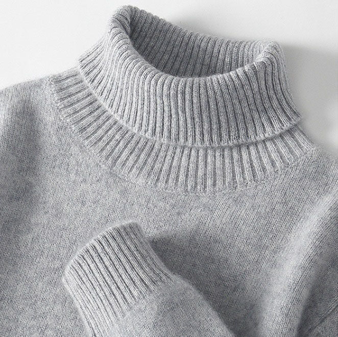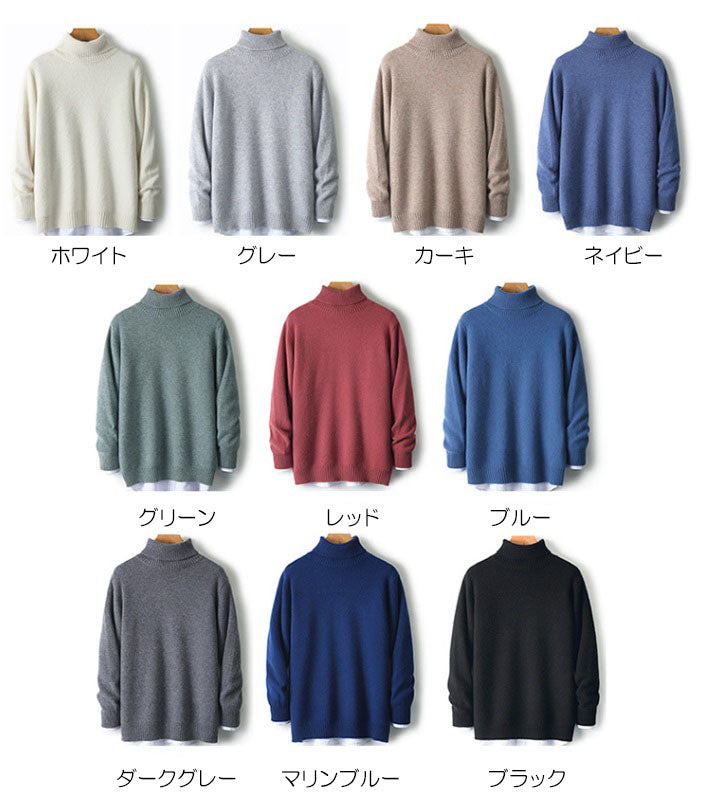 やわらかく暖かい風合いが魅力のタートルネックニットセーター。