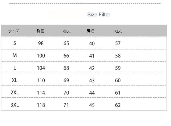 ・S〜3XLの豊富なサイズ展開で体型問わずフィット