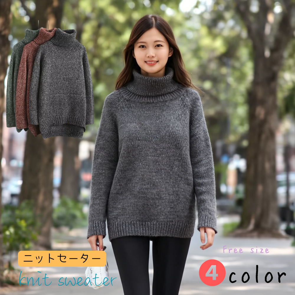 ニット レディース / タートルネック / セーター / 厚手ニット / ゆったりトップス / 秋冬ファッション / 防寒アイテム / カジュアルニット / 体型カバー / 無地ニット