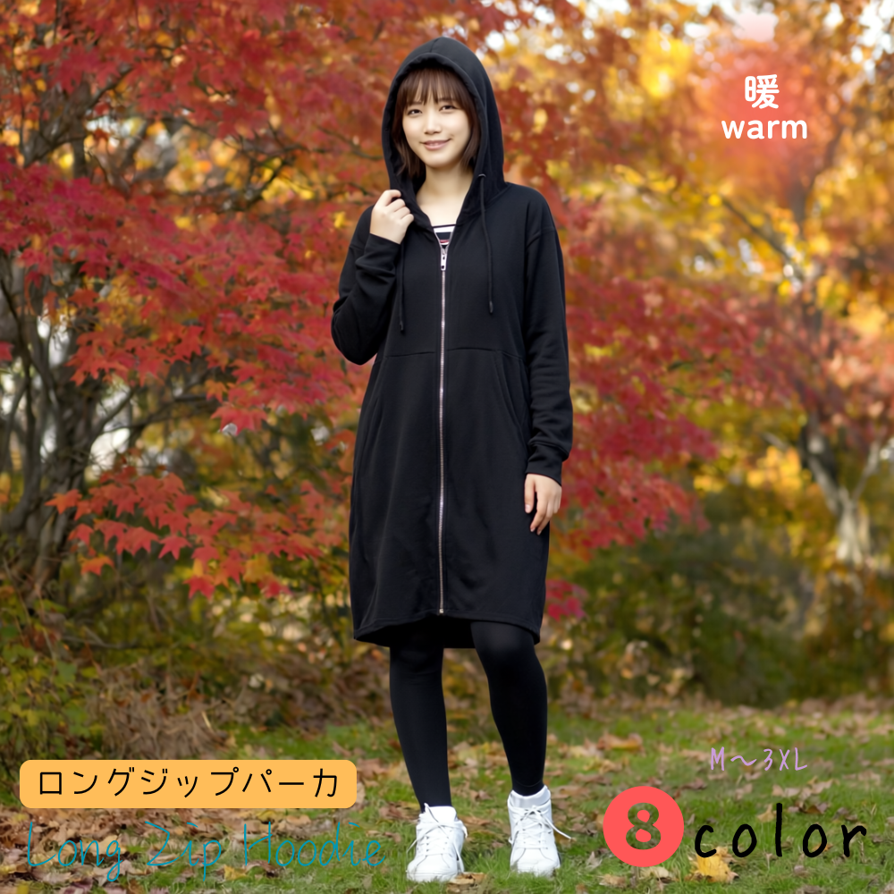🖤【ロングジップパーカ M〜3XL 8カラー 秋冬】
