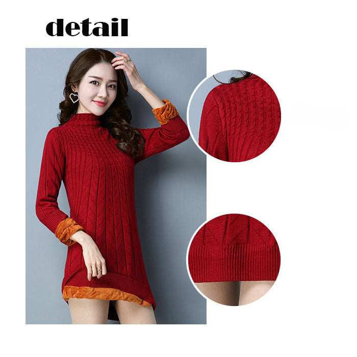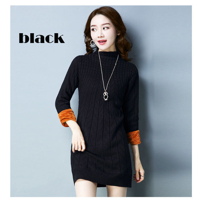 裏起毛ニットワンピース セーター チュニック トップス レディース(10122)
