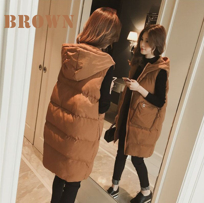ノースリーブダウン / ダウンベスト / レディースベスト / ロングベスト / 秋冬アウター / 防寒ベスト / 軽量アウター / フード付きベスト / 大きいサイズ / ゆったりコーデ