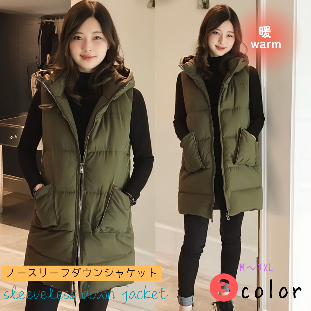 🧥【ノースリーブダウンジャケット アウター ジャケット M〜3XL 3カラー 秋冬】