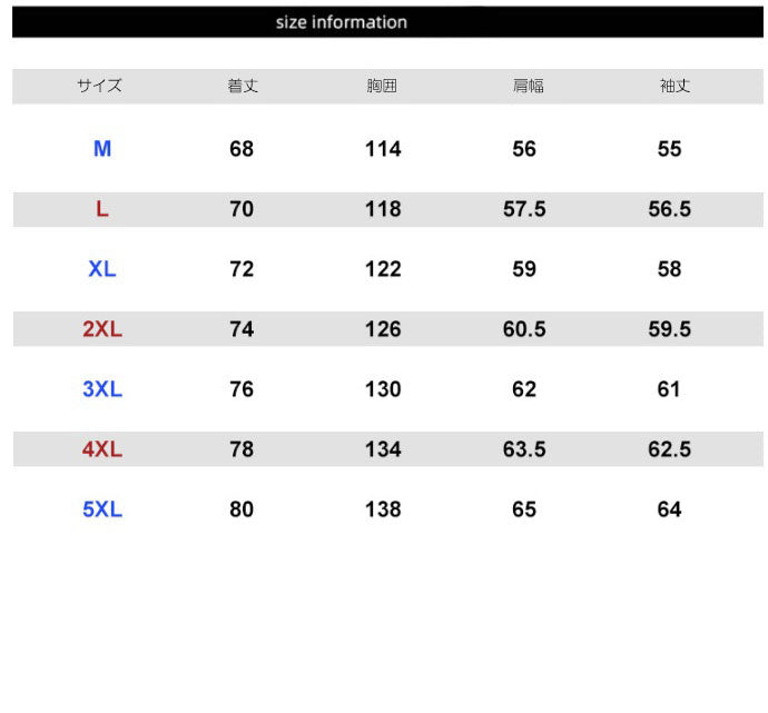 M / L / XL / 2XL / 3XL / 4XL / 5XL