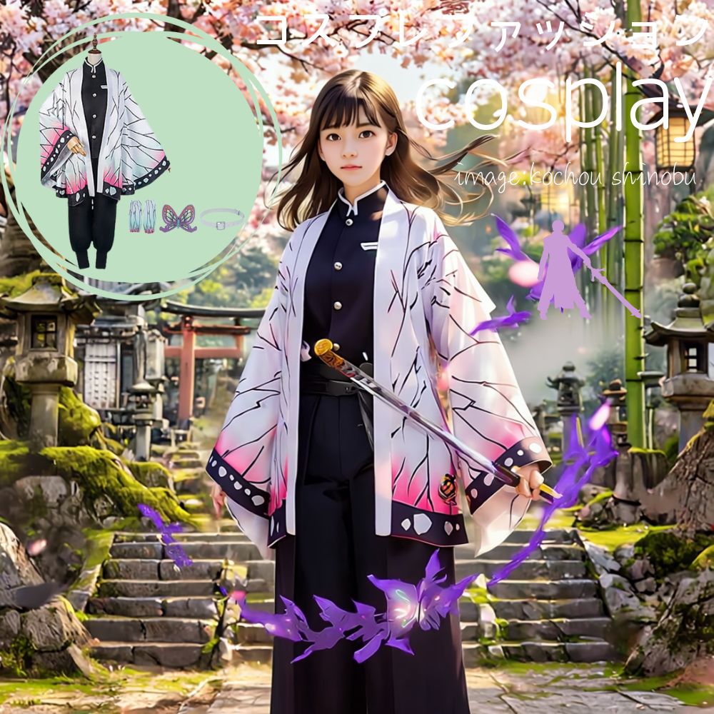胡蝶しのぶ コスプレ 衣装 / 蟲柱 コスチューム / アニメ風セット / 鬼狩り風コスプレ / 羽織 衣装 / 女性キャラ風 衣装 / S~2XL対応 / 推し活 コーデ / TikTok映え コスチューム / 和風コスプレセット