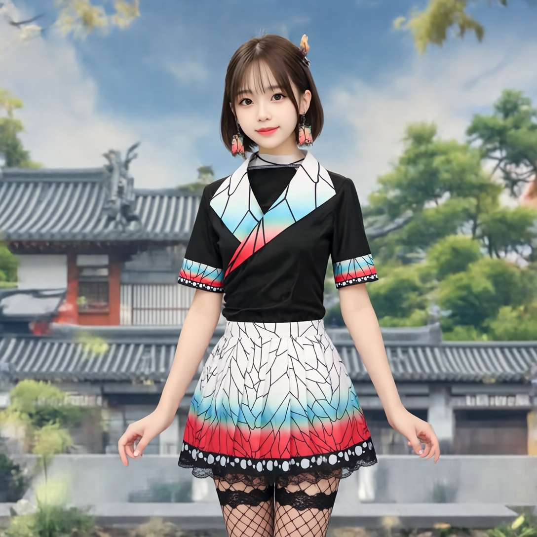 鬼滅の刃キャラクターをイメージした配色を取り入れたメイドドレス。